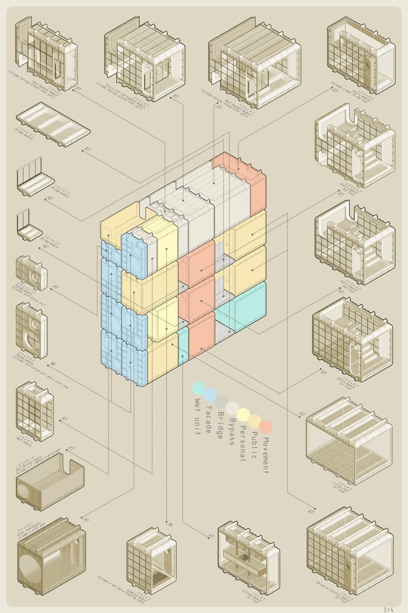 This project aims to develop modular housing units under a preexisting structure that allows the configuration of said units under a system that allows the unit...
